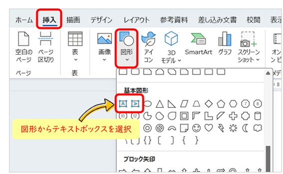 テキストボックスは図形からも出せる